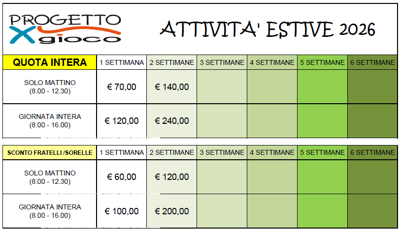 ATTIVITA' ESTIVE PROGETTOXGIOCO 2026